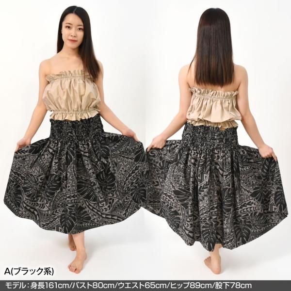 SB33P97 日本製シングルパウスカート | フラダンス衣装 葉 ロングスカート タヒチアン